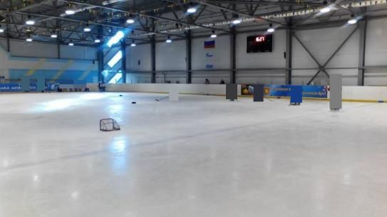 Здание физкультурно-оздоровительного комплекса г. Ржев ФОК «Орбита»: состоит из административно- бытовых помещений, спортивного зала с хоккейной площадкой и встроеного блока, размер ледовой арены 56x26 м.) в т.ч.: административно-бытовые помещения, - спортивный зал с хоккейной площадкой, машина для заливки льда в комплекте с краеподрезочной машиной Millenium plus, световое табло, машина для заточки коньков.