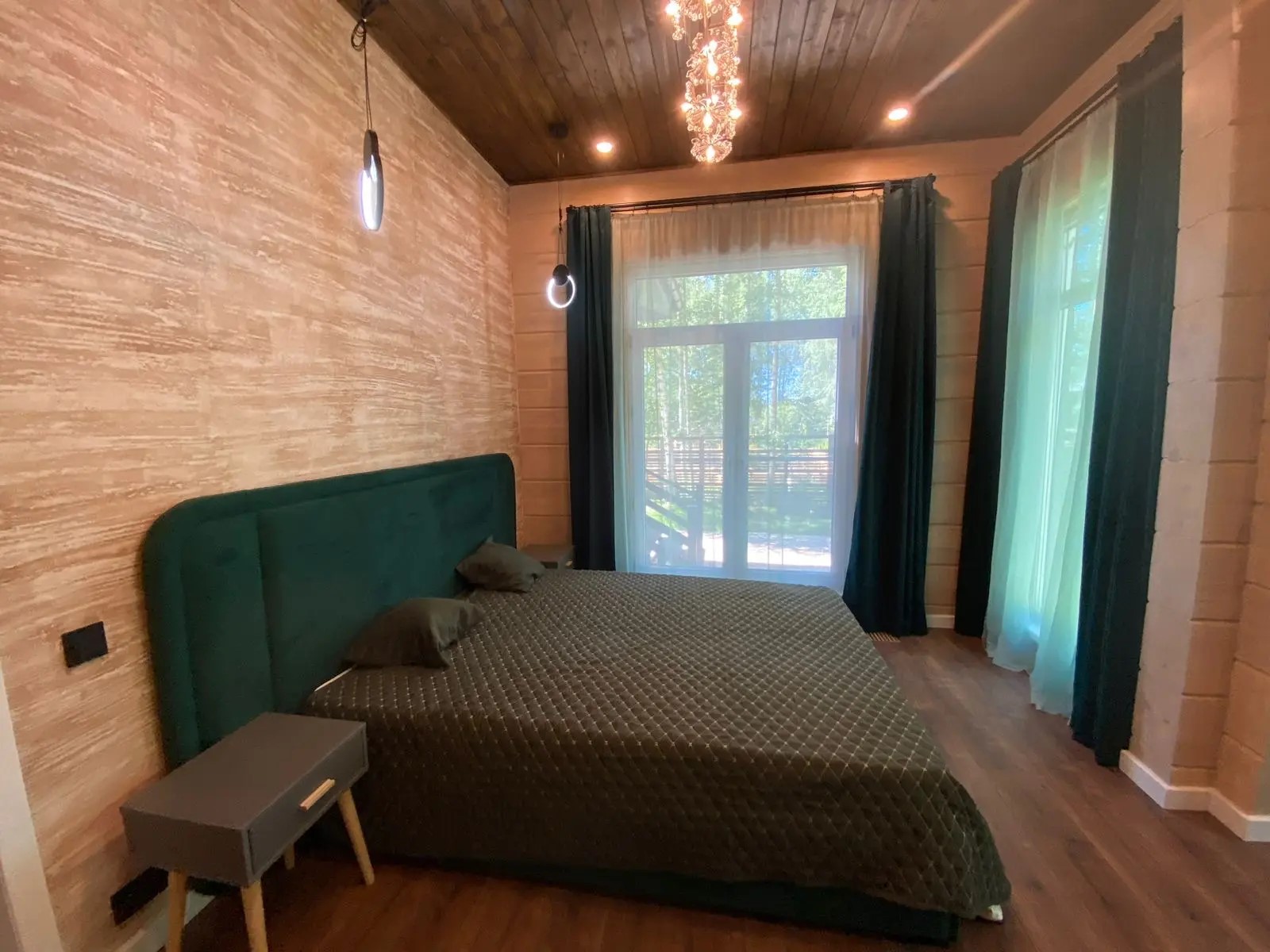 В интерьере использованы натуральные материалы: дерево, камень, что создает уют и ощущение связи с природой.